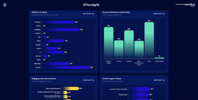 Notre feuille de route stratégique permet aux organisations sportives de se développer, d’interagir et de monétiser leur présence sur les réseaux sociaux. Elle combine données et intelligence artificielle pour vous guider à travers toutes les étapes : qui cibler, comment les cibler, comment, où et quand interagir avec eux. Notre plateforme d’informations sur les fans permet à nos clients d’accéder facilement et rapidement à des analyses à la demande.