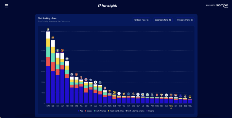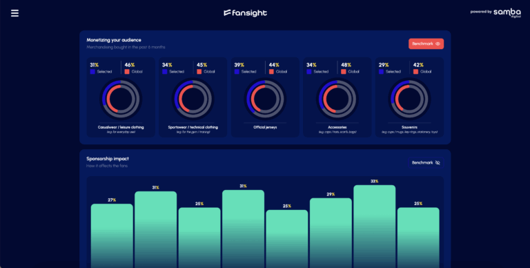 Nous avons développé Fansights, une plateforme qui permet aux organisations sportives et aux sponsors d’accéder rapidement et facilement à des analyses à la demande. Nous disposons d’informations privilégiées sur les données relatives aux fans, ce qui vous permet de découvrir comment ils pensent, pourquoi ils encouragent leur équipe et où ils vivent.