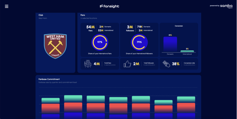 Samba Digital developed Fansights, a platform to make it easy for sport organizations and sponsors to quickly access and view on-demand analytics. We have the inside track on fan data, meaning you get a peek inside how they think, why they cheer, where they live.